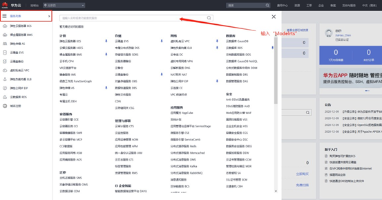 在最左侧找到“服务列表”,输入“ModelArts”。