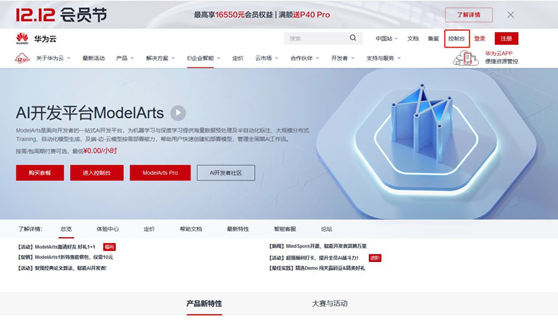 · 或者,完成账号注册以及实名认证后,点击进入 ModelArts 控制台