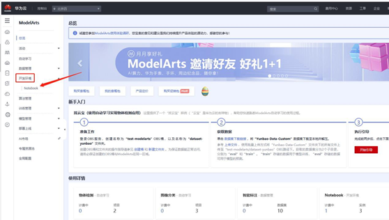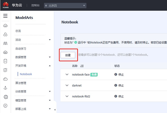 · https://console.huaweicloud.cn/modelarts/?region=cn-north-4#/dashboard