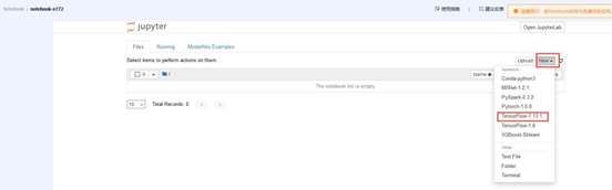 点击右上角的"New",然后选择 TensorFlow 1.13.1 开发环境。