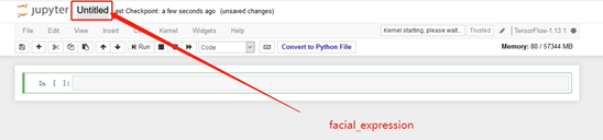 点击左上 方的 文件 名 "Untitled" , 并输 入 一个与本 实验 相关 的名称, 如"facial_expression"。(注意:这里命名不能使用中文名字!!!!)