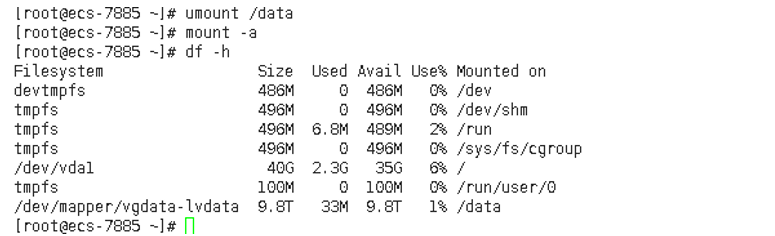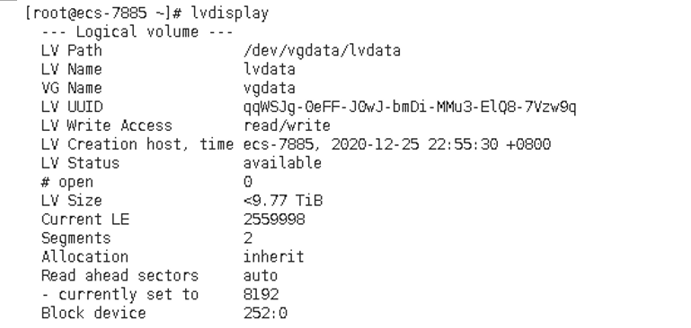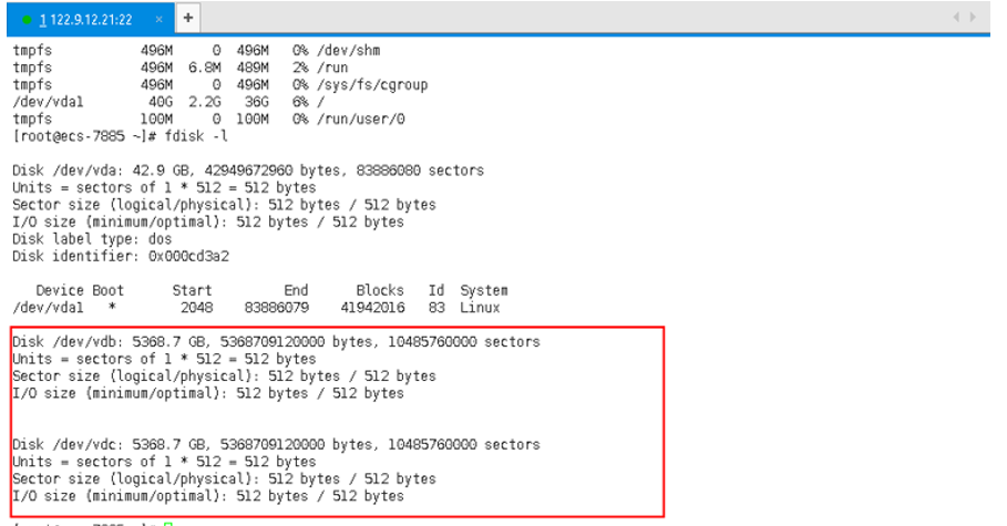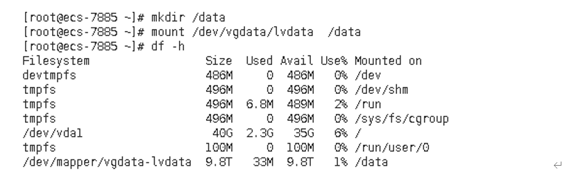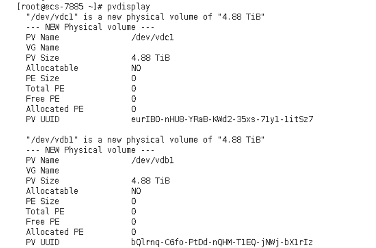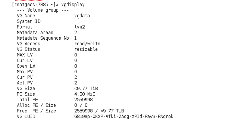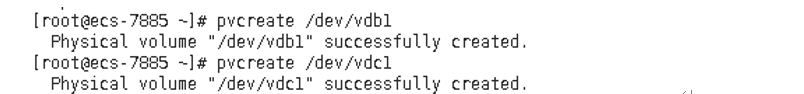 # vgcreate vgdata /dev/vdb1 /dev/vdc1