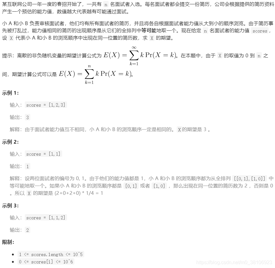 int expectNumber( int * scores , int scoresSize ){