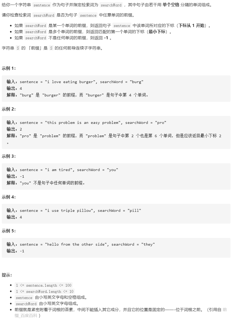 第9题:检查单词是否为句中其他单词的前缀