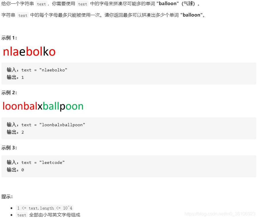 int maxNumberOfBalloons(char * text){