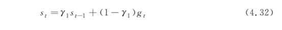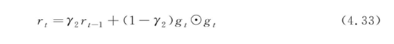 式中,rt——t-1时刻的平方梯度平均值;γ——对数平均值的比例系数。相应的梯度更新如下: