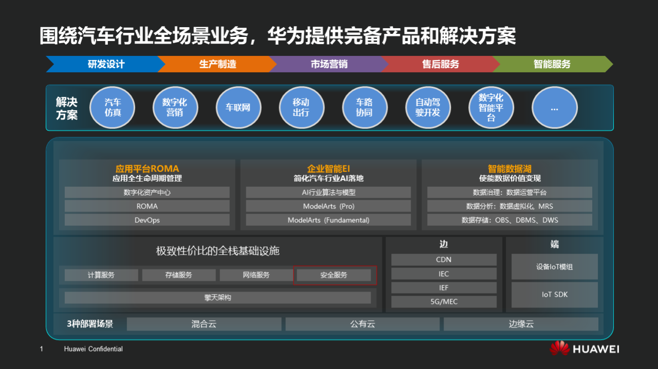 围绕着汽车行业全场景,华为云在保证行业最高安全标准的同时,还为用户提供高效的数据治理和AI模型开发工具,结合云上的微服务、容器、安全等服务能力,通过汽车仿真、数字化营销、车联网、自动驾驶、智慧出行、车路协同、数字化智能平台等场景解决方案能力,帮助车企和上下游供应商进行业务创新。