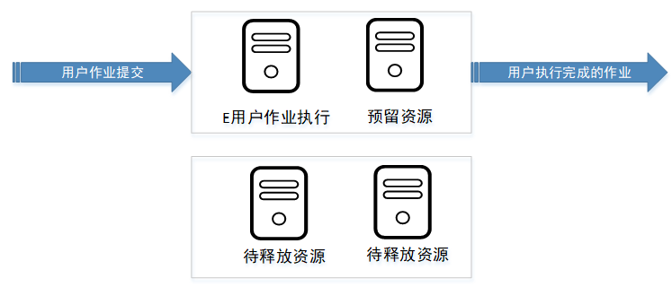 当用户提交作业在队列上时,立即分配计算资源开始执行作业。传统的共享集群计算资源有限,而且按照先来先占有的方式分配资源,导致用户经常获取不到计算资源,作业长期处理等待状态。优化后的资源池更大,同时预留了资源池缓冲区,用户计算资源分配方式变为每个用户单独分配资源,不再等待其它用户先提交的作业执行完再执行后续用户提交的作业。如果用户对计算资源使用不是很频繁的场景,该方案在保障用户计算资源的同时,为用户节省了集群创建时间,减少了用户作业等待时间。
