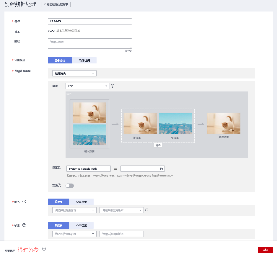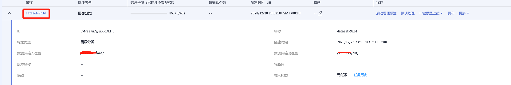 数据集名称可自动生成,也可以手动输入自己需要的名称,再选择场景,类型等,输入位置比如,food,输出位置比如,out等