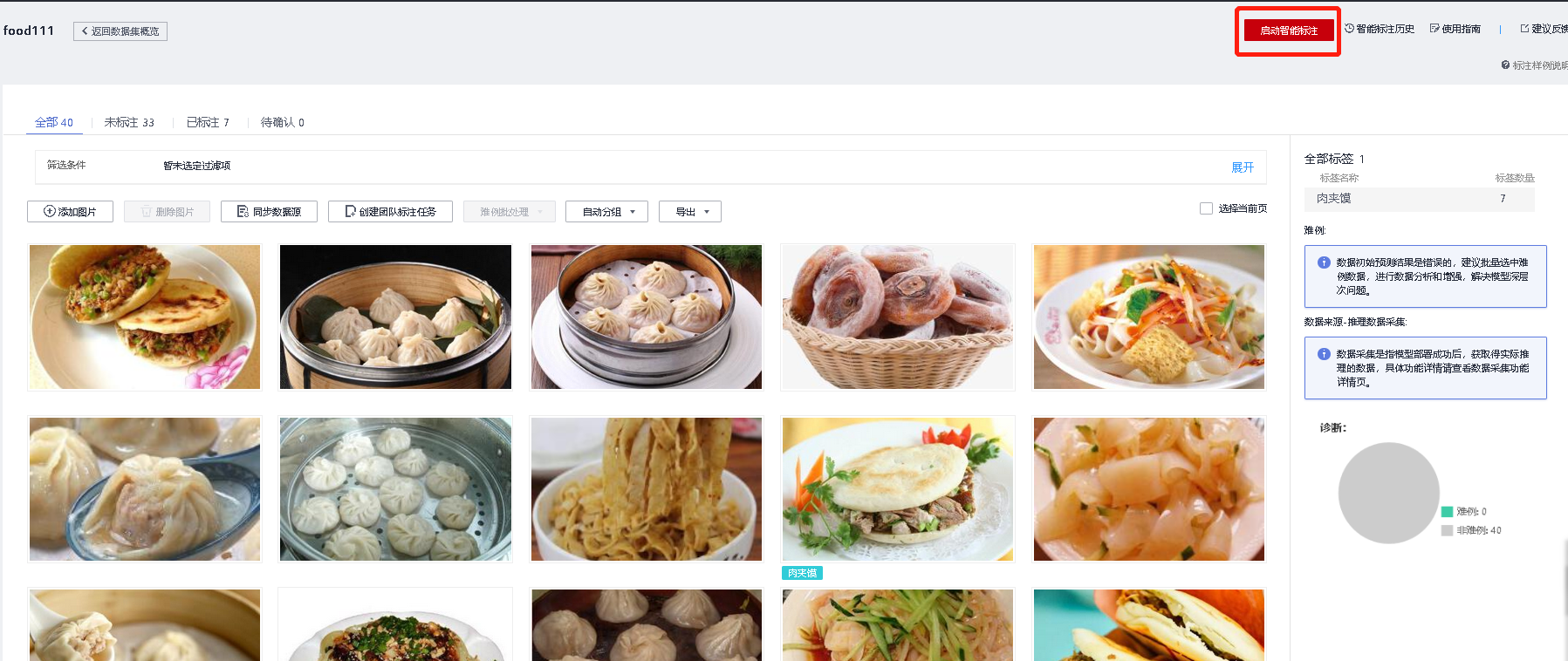 数据集较为庞大时,建议使用智能标注,建议每种标注数量十几张以上时再使用智能标注