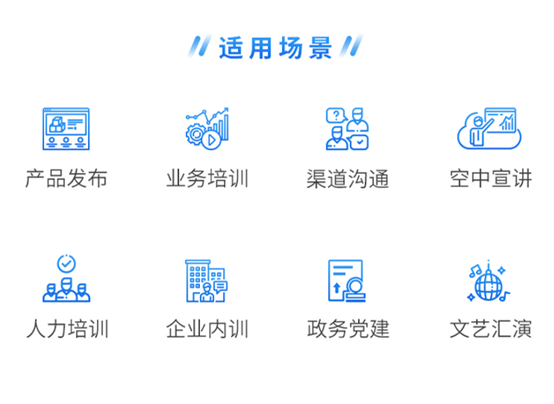 实时互动:视频连麦、PPT文档上载、培训白板、问卷调查、在线试卷、图文互动等,充分发挥直播的实时互动优势。