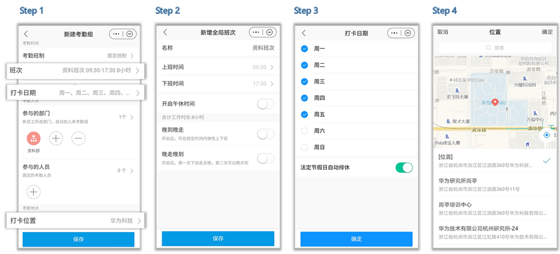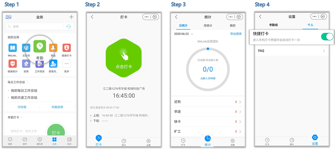 用华为云WeLink进行考勤打卡主要分以下三步: