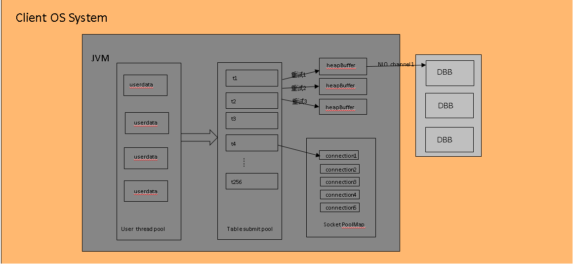 应用端读写hbase时,目前实现都是通过将每次读写操作封装成为一个个task,然后提交到应用端的表操作池中去执行,默认情况下,如果保证connection单例,那么应用将有256个线程、对应每个regionserver5个(由参数hbase.client.ipc.pool.size决定)socket链接,有的人可能会认为,这样会不会造成性能瓶颈,这里256线程是针对所有操作,也就是针对的是整个集群,而5个socket链接是针对单个regionserver,并且和regionserver的socket交互耗时是非常短的,所以一般情况下这个默认配置已经完全够用