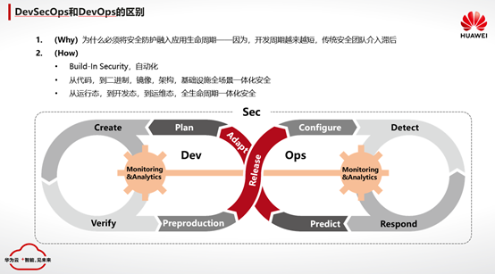 同时,华为云在DevOps的基础上,陆续增加安全设计,安全合规,安全检查,和安全防护的专业服务,通过服务化的接口和华为云DevCloud进行深度集成。同时,在已有的运行、运维安全的基础上,进一步全方面的加强网络安全、数据安全、应用安全与数据库安全,让云原生的应用生得安全,活得安全。