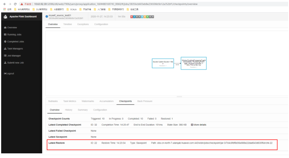 【数据湖探索】FLINK 自定义jar作业配置checkppoint功能