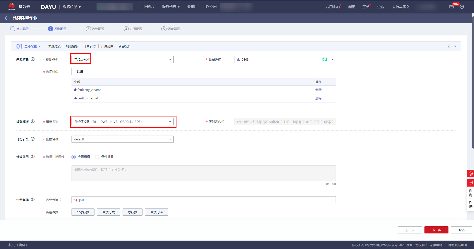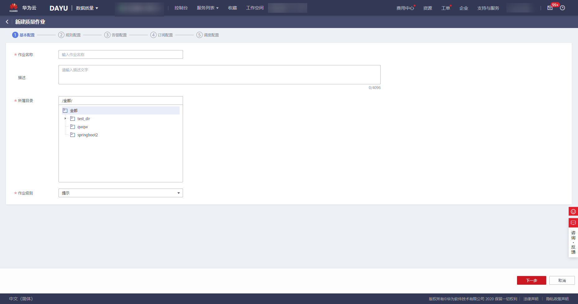 点击新建创建质量作业,填写质量作业名称后,点击下一步