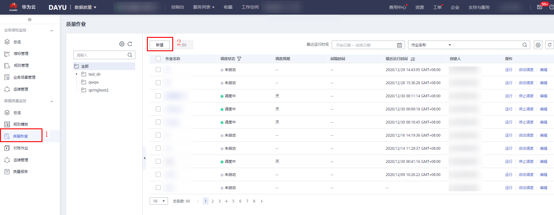 - 在DAYU中切换到数据质量模块,点击左侧质量作业菜单