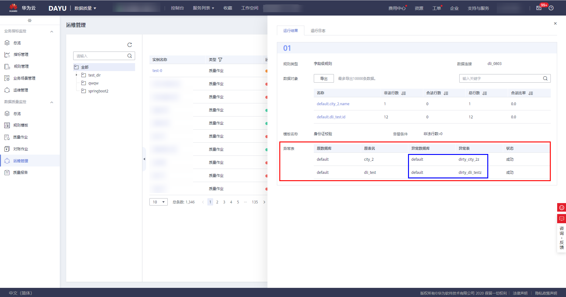 至此,完成了通过DAYU数据质量模块中的质量作业功能实现了DLI的异常数据输出功能。