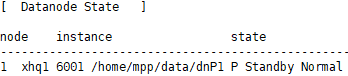 以下图中实例6001为例,其启动命令为cm_ctl start –n 1 –D /home/mpp/data/dnP1