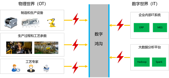 - 工业大数据的融合:对于工业大数据而言,有超过40%的数据将来自传感器,如手机、车联网、家电,也包括机器、大设备如电网、飞机和油气设备等。这使得工业大数据分析,一度被认为是解决工业问题的一把利器。但如何挖掘有用的工业大数据,使其更加有利于优化工业流程、制程管理,形成成功的数据应用场景实践,这需要解决物联网数据和传统业务数据的融合问题,包括:1)数据很脏(必须大量的算法清洗才能有可用数据);2)频率不同(现场触发的频率非常不同);3)海量;4)大小各异(数据的容量大小不一);5)种类很多(各种异构数据源);6)跨学科导致的关系复杂(数据来自“机光电热磁”等不同学科领域)。工业大数据的融合服务是个业务服务而非技术服务,这需要大量的不同专业领域的业务知识作为输入,通过数据分析方法与工业机理知识的结合,打破“知识黑盒”的限制,对工业数据进行深度挖掘,方能提供更有价值的数据服务以满足工业大数据需求。