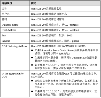 表 1-1 PowerExchange for GaussDB A 8.0 连接属性