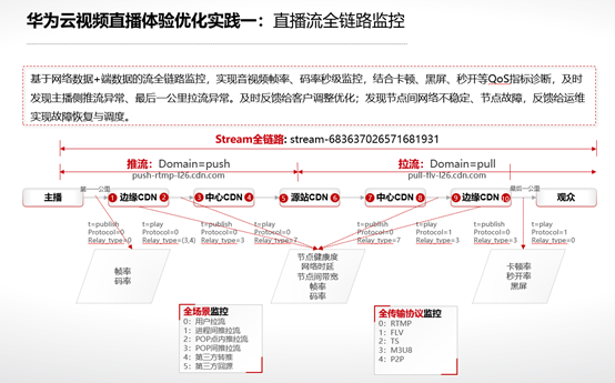 直播流全链路监控系统——从第一公里、到媒体网络、再到最后一公里,整个都是可视化的,这样可以提升问题诊断的效率。