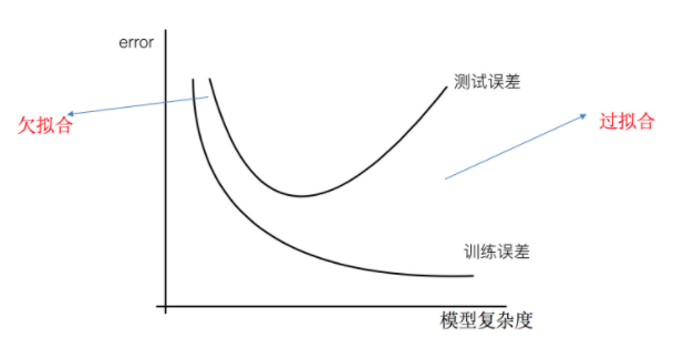 欠拟合在训练集和测试集上的误差都较大