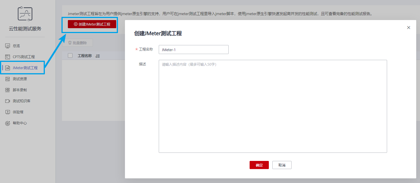 注意:JMeter测试工程只支持CCE资源组,不支持共享资源组。