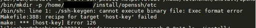 再次执行make install,此时若提示ssh-keygen执行失败,这是由于arm架构的可执行文件不识别,可暂时忽略,因为所需的文件(sshd, sftp-server, ssh-keygen等)都已安装至目标路径。