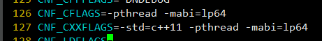 将生成的Makefile中的所有"-m64"修改为"-mabi=lp64":