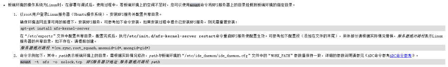 参考MindStudio文档中的海思Soc环境准备一节。在刚才的交叉编译服务器上安装NFS服务,将刚才的安装路径($HOME/install)开放出去。