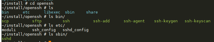 切换至OpenSSH安装路径,OpenSSH相关产物如下: