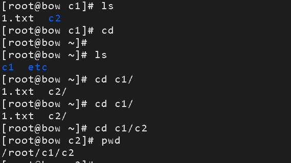 #例如:root用户进入/root目录,bow用户进入/home/bow目录