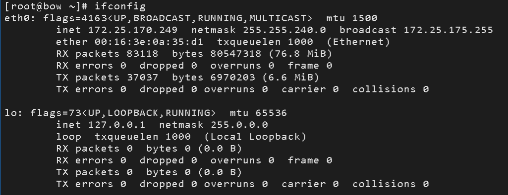 ifconfig命令属于net-tools软件包,使用前需要安装net-tools