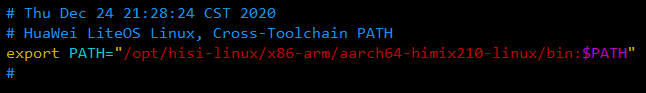 此时交叉编译器已安装至/opt/hisi-linux/x86-arm下,且编译器路径已在/etc/profile中加入PATH环境变量。