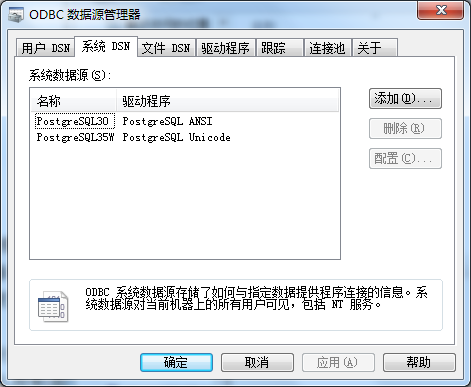 进入控制面板-》管理工具-》数据源(ODBC)。选择第二项系统DSN页签。