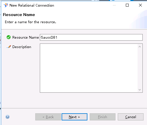 建数据库连接:右键上一步新建的”Project1”选择 New->Relational Connection,输入connection name后点击“Next”