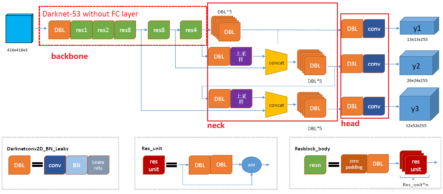 上图DBL是Yolo v3的基本组件。其本质就是卷积+BN+Leaky relu。