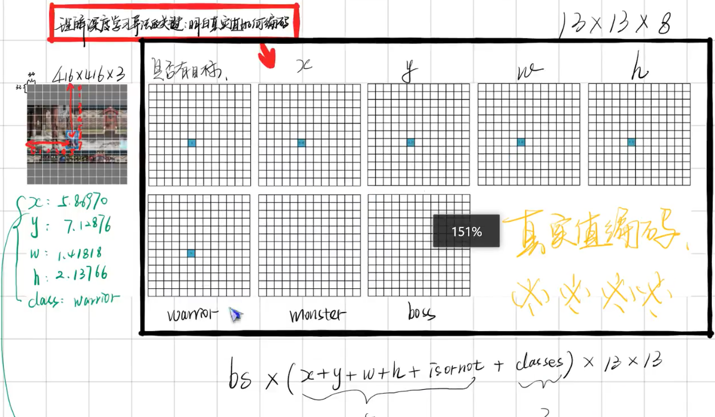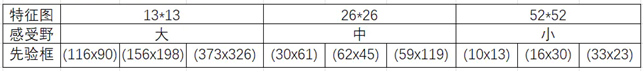 在COCO数据集上,9个聚类如下表所示,注这里需要说明:特征图越大,感受野越小。对小目标越敏感,所以选用小的anchor box。特征图越小,感受野越大。对大目标越敏感,所以选用大的anchor box。