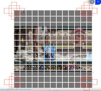 感受一下9种先验框的尺寸,下图中蓝色框为聚类得到的先验框。黄色框式ground truth,红框是对象中心点所在的网格。