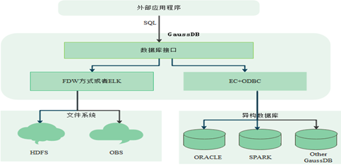 GaussDB(DWS)SQL On Anywhere针对大数据的文件系统的访问主要通过FDW或ELK机制实现的,而跨数据库的访问主要通过EC+ODBC的方式实现的。