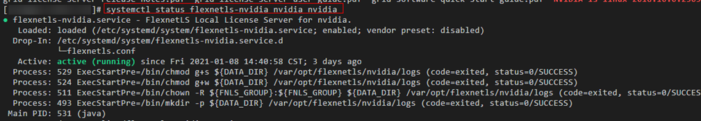 - 执行:systemctl status flexnetls-nvidia nvidia nvidia,查看状态