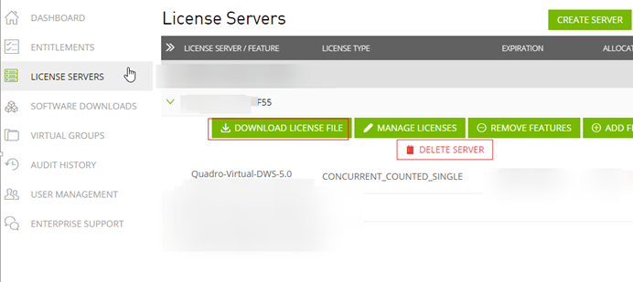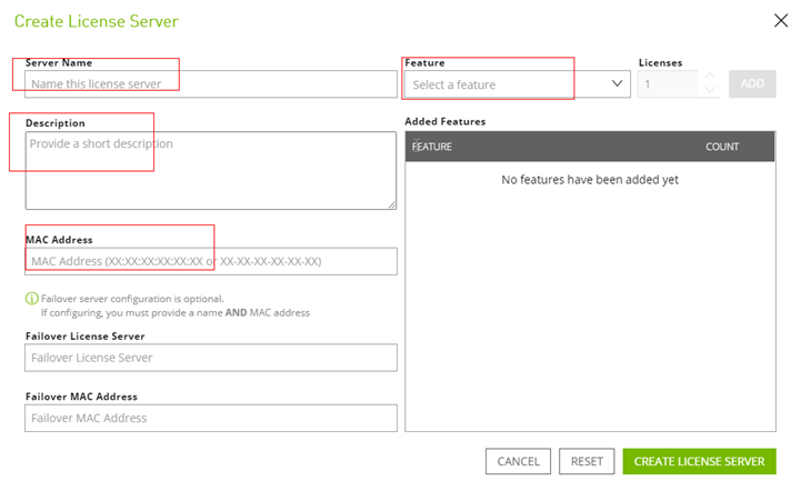 填写信息,点击“ADD”->“CREATE LICENSE SERVER”,注册license server