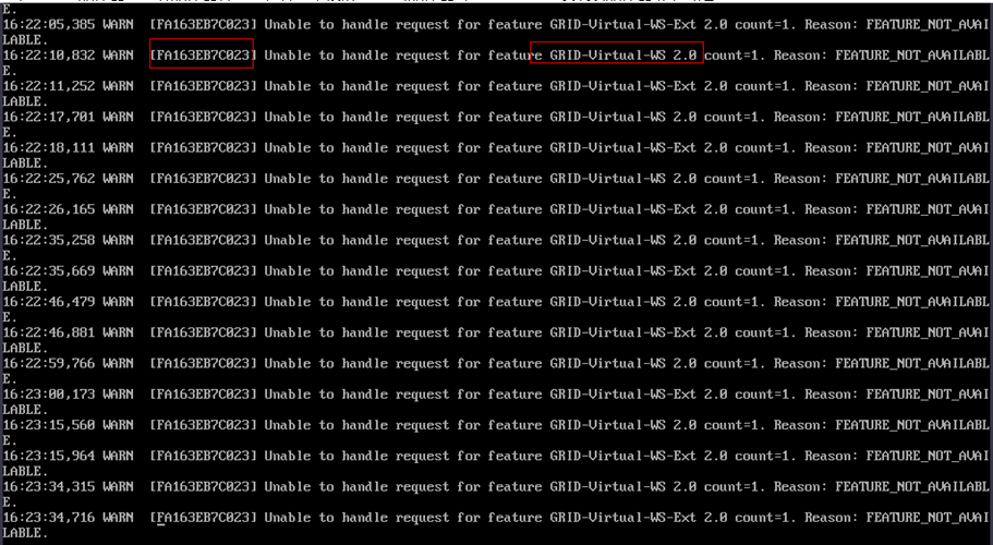 - 登录license服务器,查看服务器日志,在日志中搜索M60云服务器的MAC地址,发现该服务器请求的是GRID-Virtual-WS 2.0