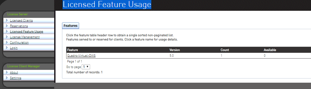 - 登录license管理界面,查看Licensed Feature Usage,在注册的license中不存在GRID-Virtual-WS 2.0,所以会授权失败