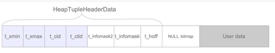 上面介绍了数据类型的基本重要知识。在记录结构中,各个列的排列将会遵守对应的数据类型的要求,包括对齐方式,然后依序放置数据即可。以上面的lineitem2表为例,其结构大体如下: