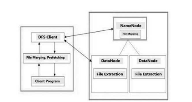文件mapping:file mapping是这样一个程序,它将小文件mapping到一个大文件中,然后将大文件存入块中。一个包含小文件和合并文件名的请求被发送到