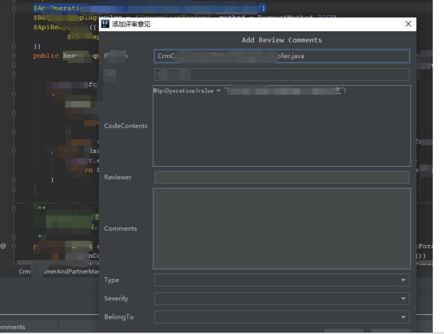 选择某一行代码,ALT+a 打开添加检视记录窗口进行添加