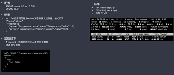 SQL:select temperature from source where temperature>20(90%数据被过滤)
