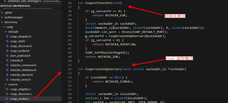源码discovery/coap/include/coap_socket.h中提供了COAP包的发送和接收函数定义。